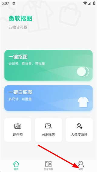 1、在傲軟摳圖首頁,點(diǎn)擊右下角我的,進(jìn)入個人中心頁面。