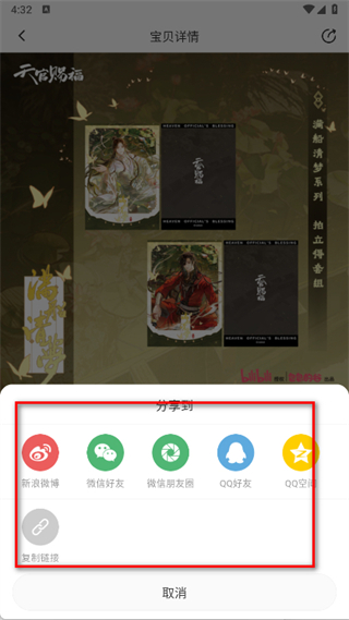 3、在寶貝詳情頁,若想將該商品分享給同好,點(diǎn)擊右上角的分享圖標(biāo)。