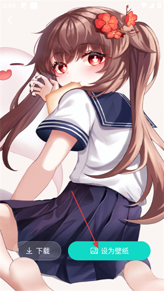3、在選中的動漫動態(tài)壁紙詳情頁,找到并點擊設(shè)為壁紙按鈕,成功應(yīng)用為手機壁紙。