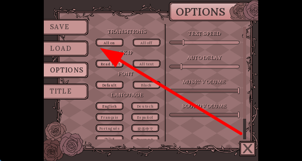 3、進入菜單設(shè)置,能調(diào)整過渡效果、文字速度等選項,根據(jù)喜好優(yōu)化游戲的視覺和操作體驗。