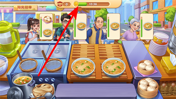 2、要關(guān)注上方進度條,通過不斷為顧客提供餐食積累進度,進度達(dá)到要求時,能解鎖更多內(nèi)容,讓餐廳經(jīng)營更具規(guī)模與樂趣。