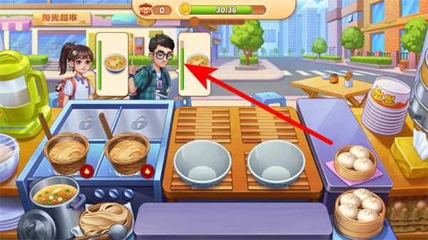 1、制作餐食時,要按步驟操作,確保餐食準(zhǔn)確提供給對應(yīng)顧客,滿足顧客需求后,能獲得積分等獎勵,推動關(guān)卡進度。