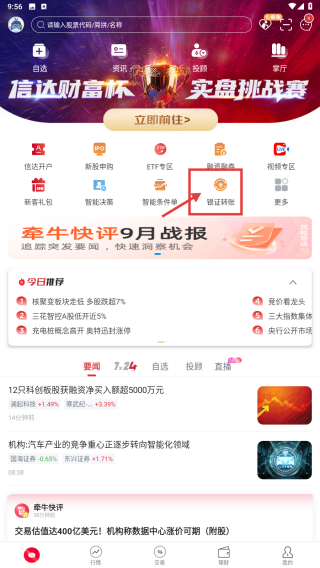 2、在首頁頁面,找到銀證轉(zhuǎn)賬板塊,點擊進入相關功能頁。