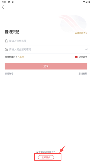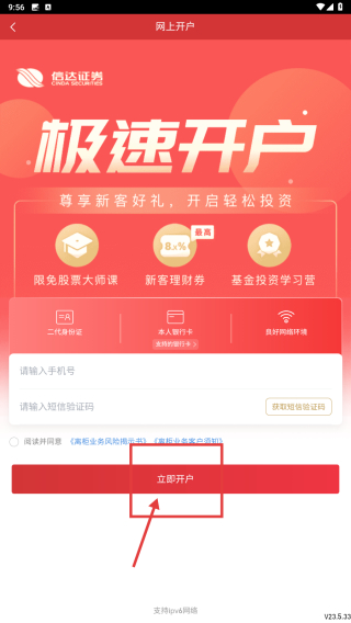 3、在功能頁中,選擇立即開戶選項,進入網(wǎng)上開戶界面。