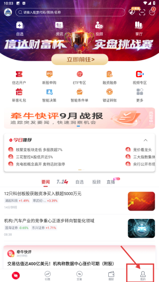 1、打開(kāi)證券類應(yīng)用,點(diǎn)擊底部我的選項(xiàng),進(jìn)入個(gè)人中心頁(yè)面。