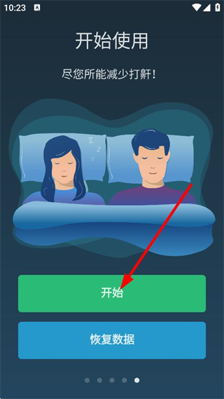 1、在開始使用頁面,點擊開始,進(jìn)入鼾聲分析器頁面。