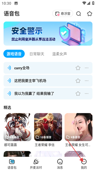 1、進入語音包頁面,點擊底部我的,進入個人頁面。