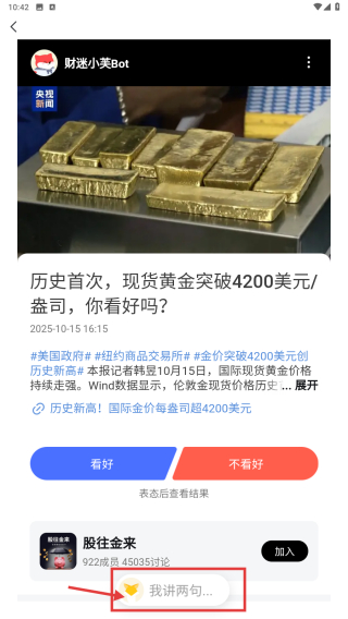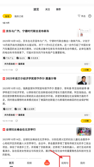 1、打開資訊互動類應(yīng)用,點擊底部說兩句選項,進(jìn)入互動板塊頁面。