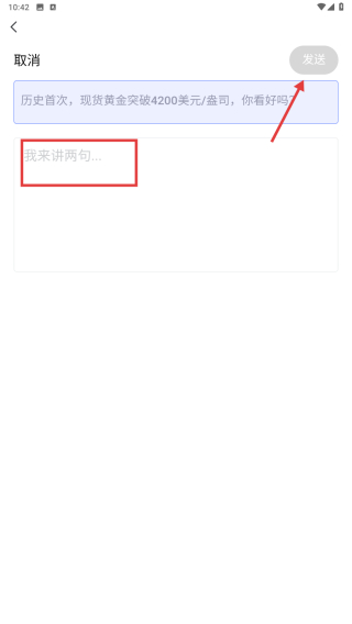 4、輸入完成后,點擊發(fā)送按鈕,完成觀點發(fā)布操作。