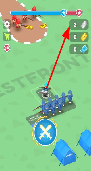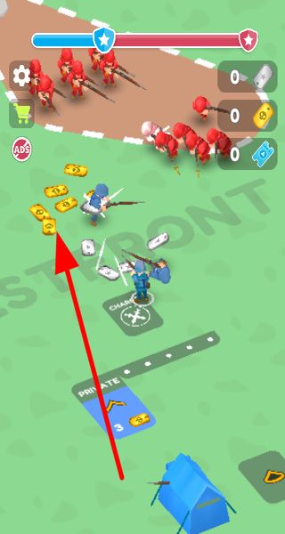 1、在戰(zhàn)斗中收集金牌,這些金牌可用于后續(xù)建設(shè)士兵營地或購買道具,助力在陣地爭奪中取得優(yōu)勢。