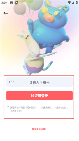 3、在登錄頁(yè)面,輸入手機(jī)號(hào)同意協(xié)議后,點(diǎn)擊登錄,完成登錄操作。