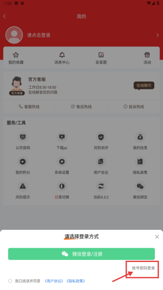3、在登錄選擇界面,選擇賬號(hào)密碼登錄選項(xiàng),進(jìn)入賬號(hào)密碼輸入界面。