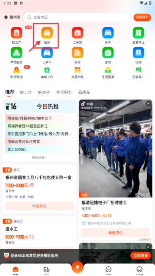 1、打開生活服務(wù)類應(yīng)用,點(diǎn)擊租房分類選項(xiàng),進(jìn)入租房功能頁面。