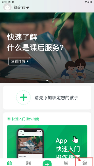 1、打開課后服務(wù)類應(yīng)用,點(diǎn)擊底部我的選項(xiàng),進(jìn)入個(gè)人中心頁(yè)面。