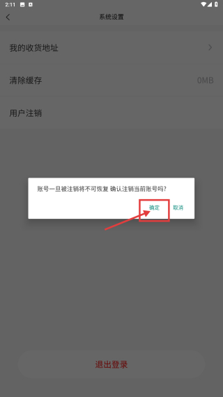 4、在注銷確認(rèn)彈窗中,點(diǎn)擊確定按鈕,完成賬號(hào)注銷操作。