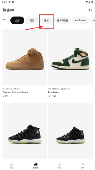 2、在熱賣商品頁面,選擇服裝分類,瀏覽服裝類商品列表。
