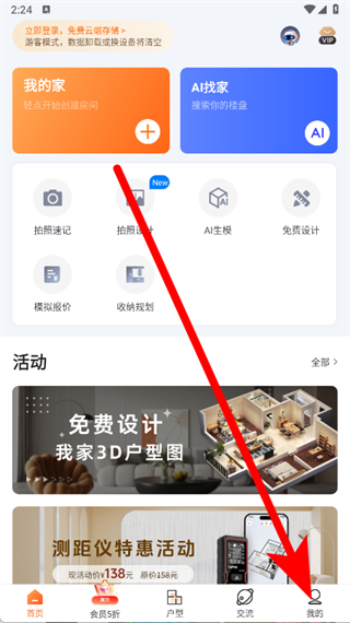 1、打開知戶型,點擊首頁右下角我的,進入個人頁面。