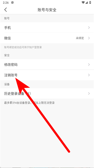4、進入賬號與安全頁面后,點擊注銷賬號。