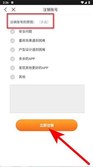 6、選擇注銷賬號的原因,點擊立即注銷,完成賬號注銷。