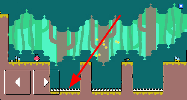 1、在森林場(chǎng)景的平臺(tái)間移動(dòng)時(shí),要留意尖刺等陷阱,一旦掉落其中,角色會(huì)死亡,游戲需重新開始。