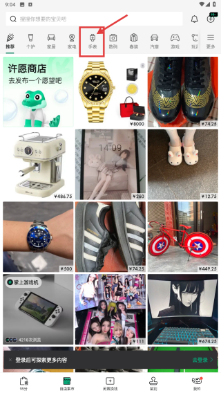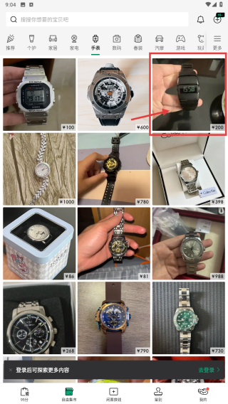 2、在分類市場(chǎng)頁(yè)面,選擇手表分類,瀏覽手表類閑置商品列表。