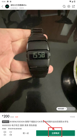 3、在商品列表中,點(diǎn)擊目標(biāo)商品如BENNDESIGN致敬千禧復(fù)古Y2K電子表,進(jìn)入商品詳情頁(yè)。