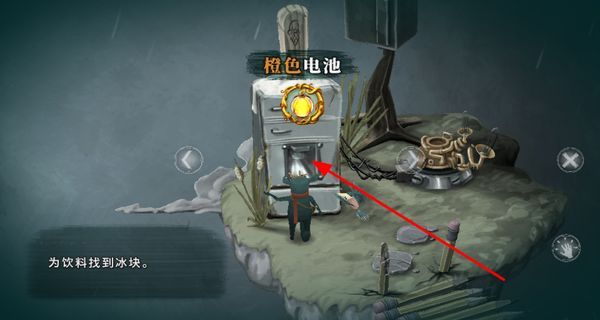 4、找到?jīng)]有電的制冰機(jī),把橙色電池放進(jìn)制冰機(jī)里,啟動(dòng)制冰機(jī),為飲料制作冰塊,推進(jìn)任務(wù)進(jìn)程。