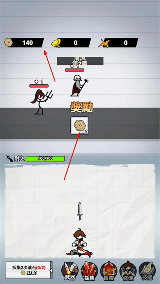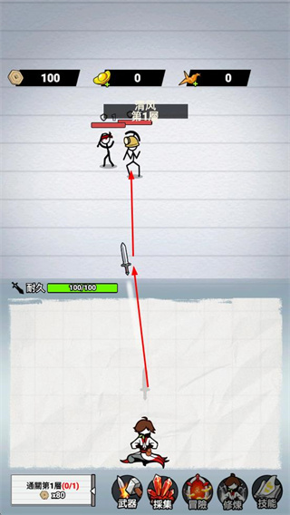 2、操控火柴人使用武器與敵人戰(zhàn)斗,擊敗敵人獲取資源。