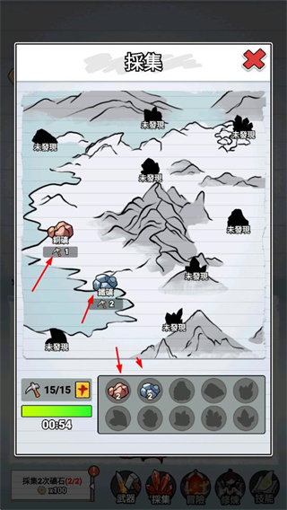 4、在采集界面選擇地圖區(qū)域采集資源,為武器鑄造和角色發(fā)展提供材料支持。