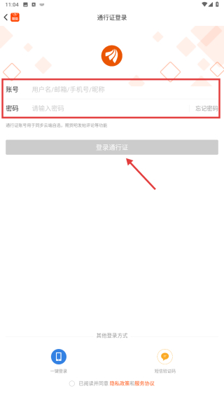 3、在登錄選擇界面,選擇賬號(hào)密碼登錄方式,進(jìn)入賬號(hào)密碼輸入界面。