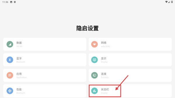 1、打開系統(tǒng)設(shè)置類應(yīng)用,點擊狀態(tài)欄選項,進(jìn)入狀態(tài)欄設(shè)置頁面。