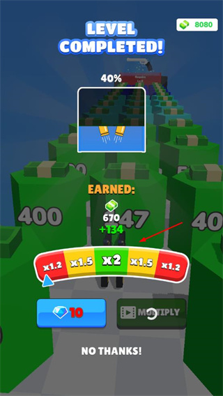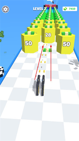 3、在跑酷過程中,利用升級后的槍械擊碎金幣方塊和障礙物,積累金幣和鉆石資源。