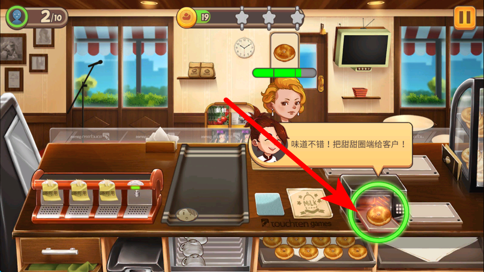 3、每成功完成一筆交易,比如給客戶提供了甜甜圈,就能獲得相應(yīng)的金幣收益,隨著完成的訂單增多,金幣會(huì)不斷累積。