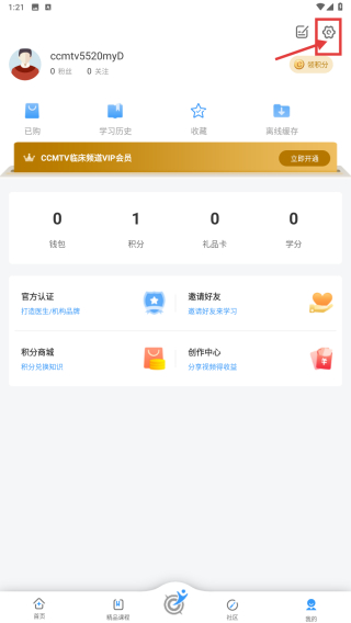 2、在個人中心頁面,點擊右上角設(shè)置圖標(biāo),進入設(shè)置界面。