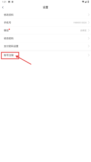 4、在賬號資料頁面,點擊賬號注銷選項,按提示完成賬號注銷操作。