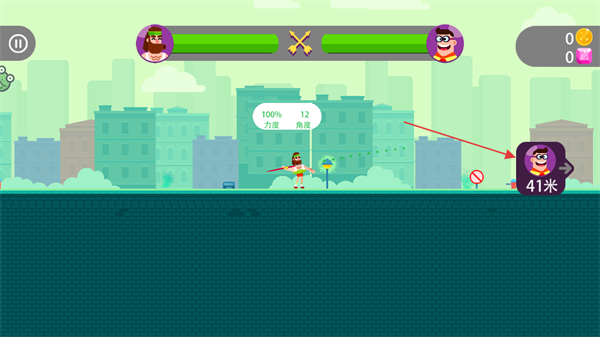 3、調(diào)整好后松手,射出箭攻擊對手,如果擊中對手,即可獲得勝利,若沒擊中,對手會進(jìn)行反擊。