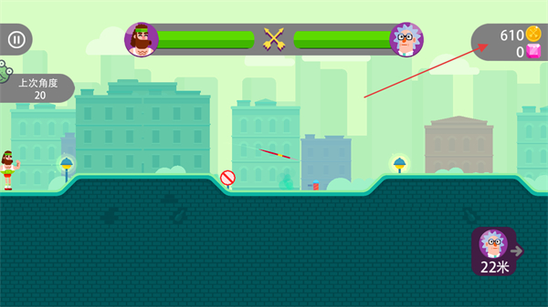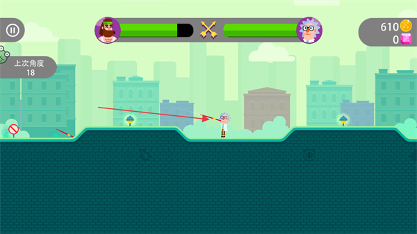 3、若未擊中對(duì)手,對(duì)手會(huì)反擊,需參考左側(cè)上次角度,重新調(diào)整射箭參數(shù)。