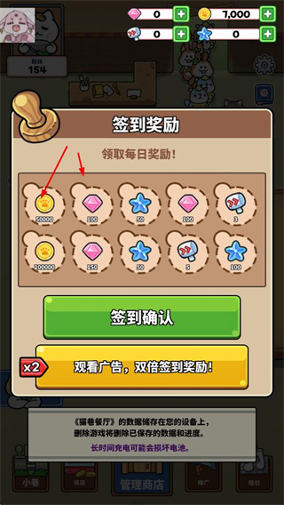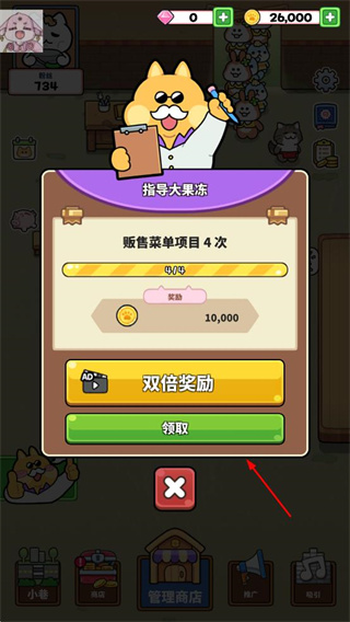 4、完成任務(wù),領(lǐng)取金幣獎(jiǎng)勵(lì),可選擇雙倍獎(jiǎng)勵(lì),助力咖啡館持續(xù)發(fā)展。