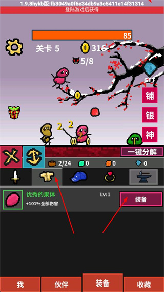 4、在裝備界面,獲取并裝備各類裝備,提升全部傷害等屬性,助力角色在更高關卡中戰(zhàn)斗。