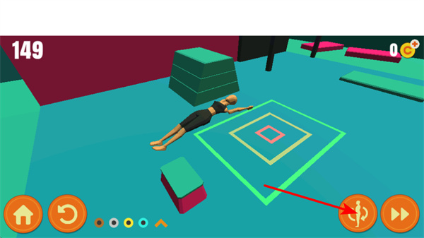 2、觸發(fā)翻轉(zhuǎn)動(dòng)作,點(diǎn)擊右下角的動(dòng)作按鈕,觸發(fā)角色的體操翻轉(zhuǎn)動(dòng)作,開始表演。