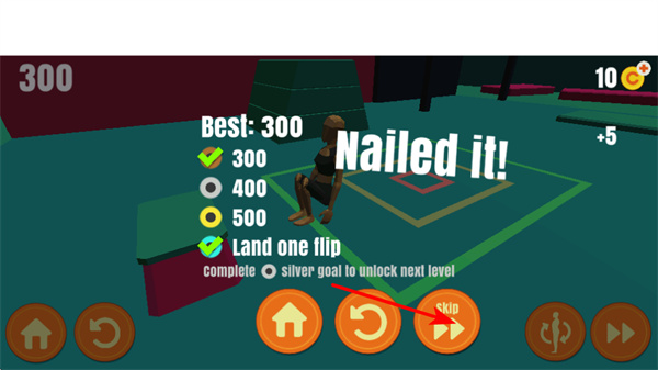 3、獲取翻轉(zhuǎn)分?jǐn)?shù),成功完成翻轉(zhuǎn)動(dòng)作后,獲取分?jǐn)?shù)如FLIP +100,提升游戲得分。