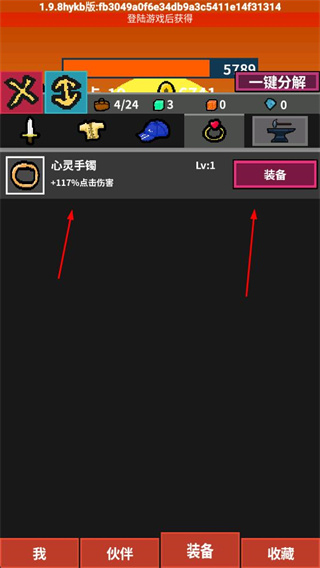 3、在裝備界面,獲取并裝備各類裝備,提升點擊傷害等屬性,增強角色戰(zhàn)力。
