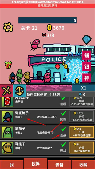 4、解鎖和升級不同類型的伙伴,搭配近戰(zhàn)、遠(yuǎn)程伙伴,提升整體戰(zhàn)斗能力,朝著更高關(guān)卡目標(biāo)努力。