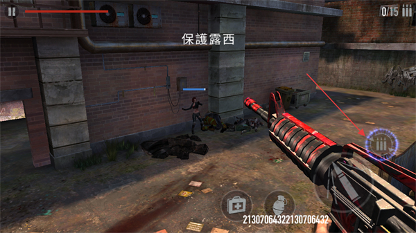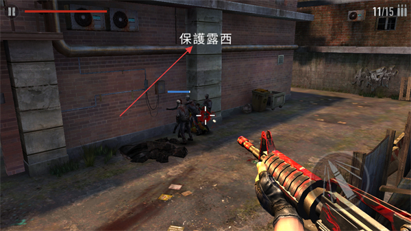 1、根據(jù)提示保護(hù)露西,用武器射擊靠近露西的僵尸,保護(hù)她安全。