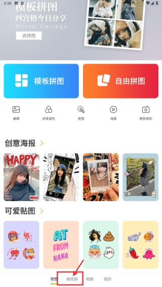 1、打開視頻制作類應(yīng)用,點(diǎn)擊底部做視頻選項(xiàng),進(jìn)入視頻制作功能頁面。