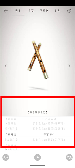 2、點擊竹笛樂器的展示區(qū)域,進(jìn)入竹笛專屬的調(diào)音功能界面。