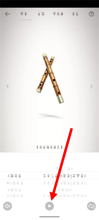 4、選擇需要校準(zhǔn)的調(diào)類后,點擊界面底部的播放按鈕,完成竹笛的定調(diào)與調(diào)音操作。