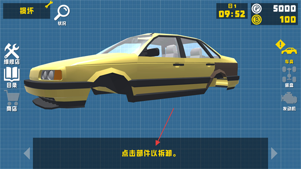 2、進(jìn)入修理界面,根據(jù)提示點(diǎn)擊部件以拆卸,找到損壞的左后翼子板部件并點(diǎn)擊拆卸。