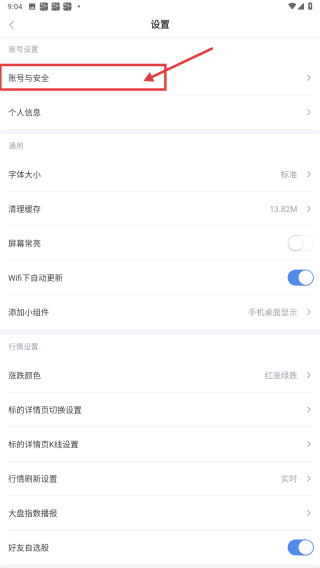3、在設(shè)置界面,選擇賬號與安全選項,進入賬號安全頁面。