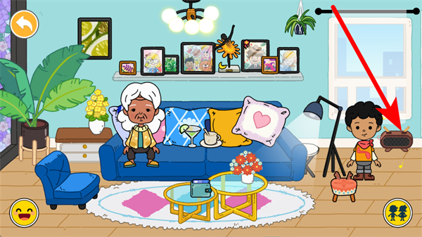 2、玩家能看到收音機等物品,點擊收音機,可觸發(fā)播放音樂等互動,營造溫馨氛圍,同時還可與沙發(fā)上的角色交流,開啟趣味對話